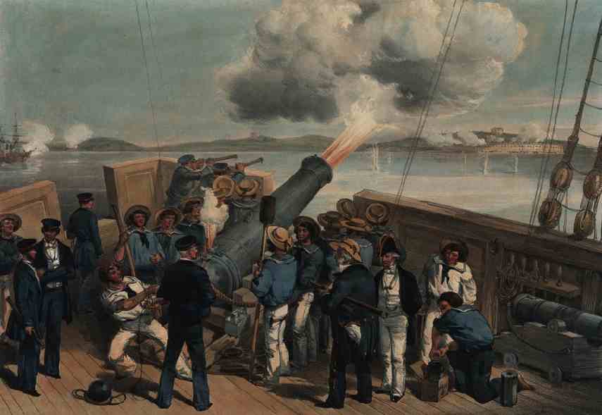 Am 11. März 1854 lief die britische Ostsee-Flotte unter großem Jubel der Bevölkerung, pompös verabschiedet von der Queen auf der Königlichen Jacht, aus Spithead aus, um im Rahmen des Krim-Krieges die russischen Ostseehäfen zu blockieren und die russische Flotte niederzukämpfen. Die russische Flotte stellte sich ihren Gegnern unter Admiral Charles John Napier jedoch nicht. Daraufhin wurden in den folgenden Wochen russische Werften und Häfen angegriffen und bombardiert. Das Bild zeigt das britische Bombardement der Festung Bomarsund.