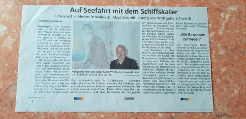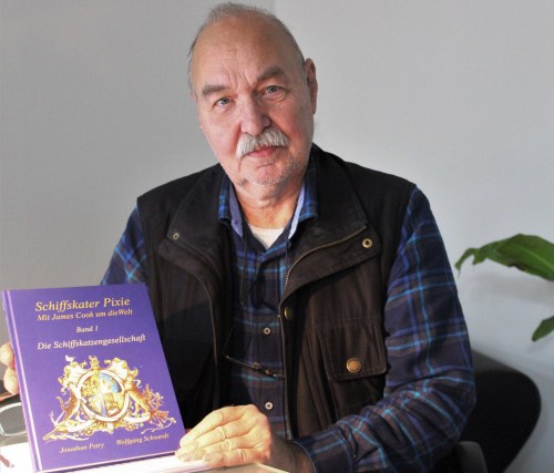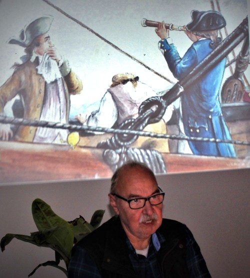 Es waren die noch unveröffentlichten Geschichten und Bilder beziehungsweise Skizzen der geplanten Illustrationen des zweiten Bandes von Schiffskater Pixie, mit James Cook um die Welt, die ich der versammelten Zuhörerschaft am 29.11.2919 in Freienhagen/Waldeck präsentierte. Zuvor aber beamte ich das Video in dem mein Freund und Illustrator der Schiffskater Pixie Bücher, der Schiffskatzenmaler Jonathan Petry vorgestellt wird im Großformat an die Wand. Der wird wohl auf absehbare Zeit aufgrund seines Gesundheitszustandes nicht an meinen Lesungen – gewissermaßen als Kommentator, wie ich es mir wünschen würde – teilnehmen könen.