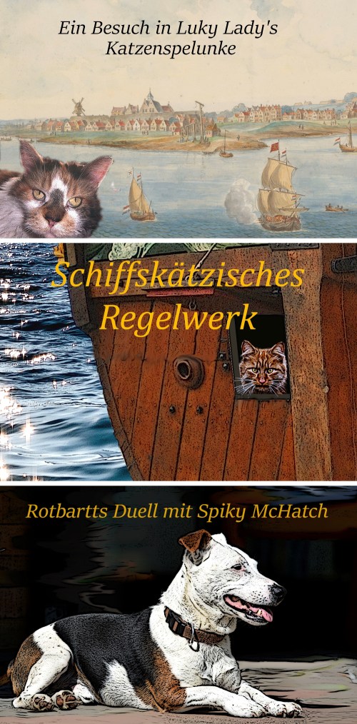 Schiffskater Pixie Catpickle, der den Entdeckungsreisenden James Cook auf seiner ersten Südseereise begleitete, hatte ja bekanntlich einen eigenen Reisebericht verfasst. Aus dem noch unveröffentlichten Teil präsentierte ich die aufregende Jagd auf Fliegende Fische, die seltsame Geschichte mit dem Sauerkraut und die Äquatortaufe, bei der nach Angaben des etwas trotteligen Schiffskaters Sir Booby Menschen und Tiere ertränkt werden. Und natürlich finden sich in Pixies Tagebucheinträgen immer wieder auch kleinere amüsante Anekdoten wie beispielsweise den Vorfall vom verschwundenen Vogel, zu dem sich der Schiffskater eigentlich nicht äußern möchte oder über den speziellen Geruch auf dem Mannschaftsdeck.