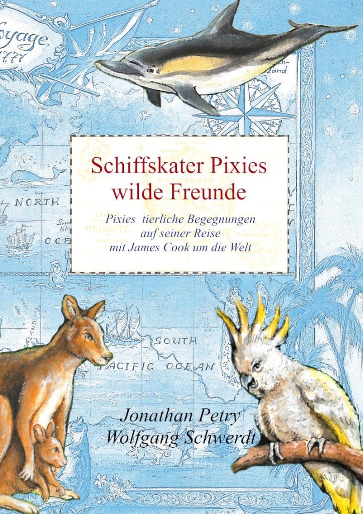 Im August 1768 startete Schiffskater Pixie mit James Cook auf seine Forschungsreise in die Südsee. In den folgenden drei Jahren sollte der Bordvierbeiner zahlreiche wilde Zeitgenossen kennenlernen, die inzwischen längst vom Aussterben bedroht sind. Diesem Thema widmet sich das neue besondere Autorenbuch, das gerade in Kooperation mit Schiffskatzenmaler Jonathan Petry entsteht. Insofern ist das Buch in mehrfacher Hinsicht etwas Besonderes.