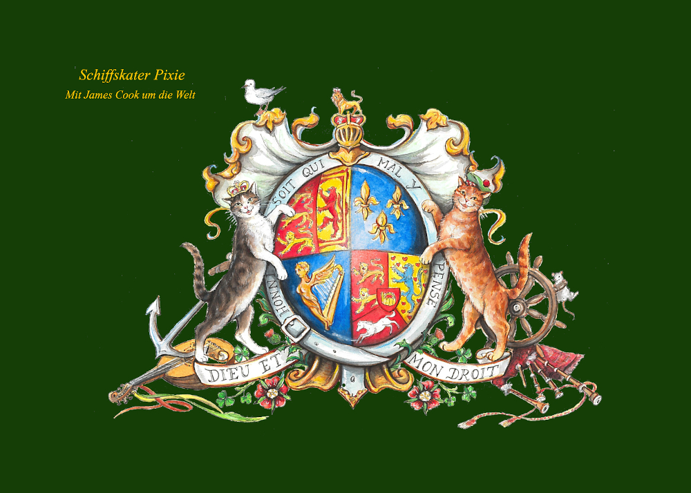 Auf den ersten Blick scheint es bei entsprechender Phantasie nicht sonderlich schwierig zu sein, das Reisetagebuch eines Schiffskaters zu verfassen. Schließlich handelt es sich ja um eine fiktive Geschichte. Dennoch, dieser fiktive Schiffskater beschreibt ja die erste Reise des realen Seefahrers James Cook und da sind die Ereignisse und Abenteuer, die er zu bestehen hat, natürlich an den historischen Rahmen gebunden. Mir als Autor liegen da neben der modernen Fachliteratur vor allem drei historische Quellen vor: