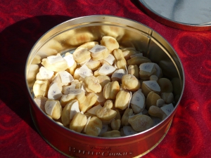 Gut 100 Katzenkekse hat unsere Freundin Sonja mit den sechs Samptpfoten, darunter die erfahrene männliche „Lottofee“ Flori, gebacken. 58 davon wurden mit einem Lebensmittelstift durchnummeriert, in das Losglas geworfen und gut durchmischt.